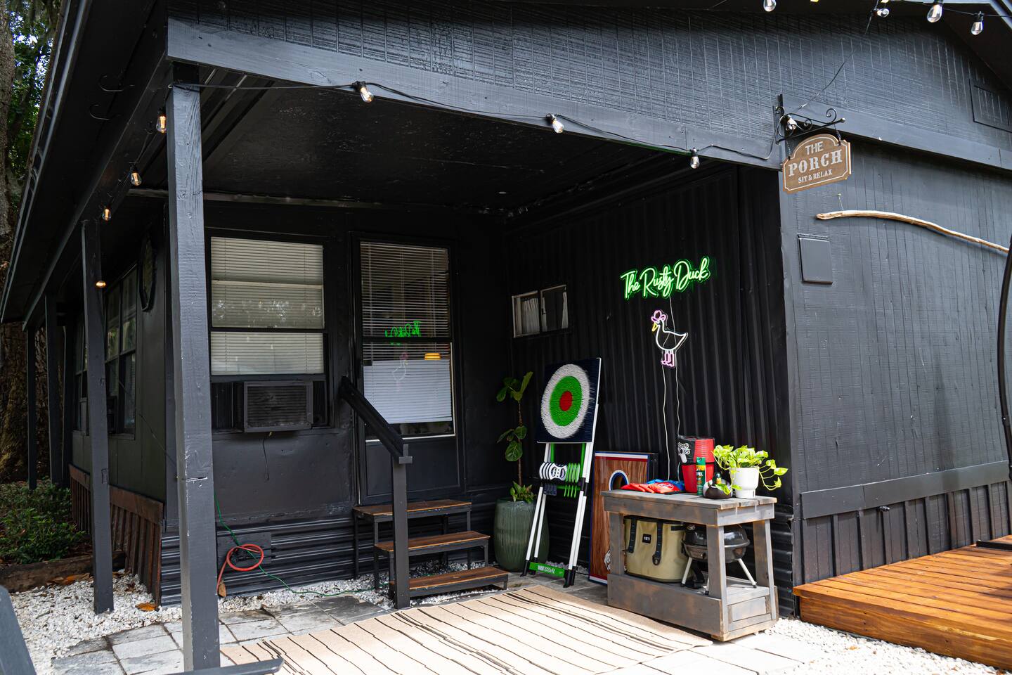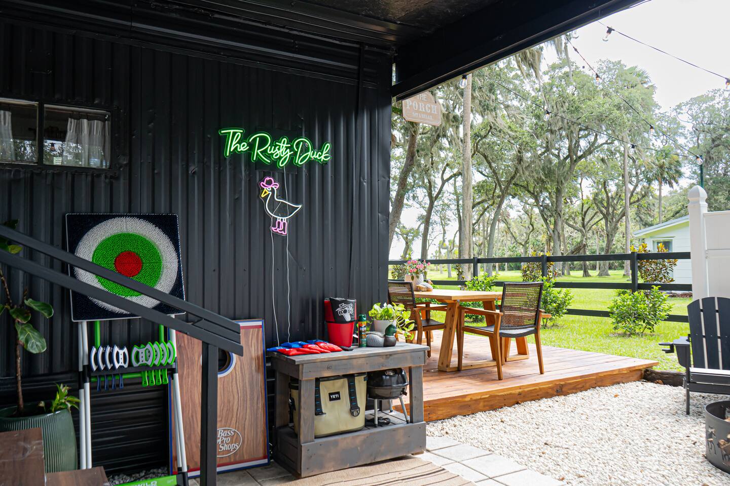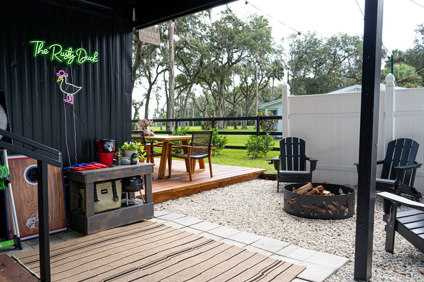 Only a few minutes from Historic Downtown, come enjoy the Rustic comfort of The Rusty Duck. A cozy coastal retreat full of views! With Old Florida charm this peaceful getaway features a private patio, fire pit, and fully stocked kitchen- perfect for couples or families exploring the area. Located next door to the St. Augustine Airport. Watching the planes takeoff & land against the backdrop of the marsh feels timeless.