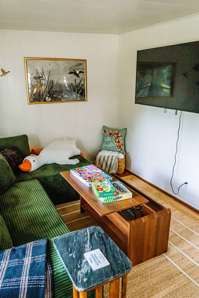 🏡The Rusty Duck is part of the 3 Duck Ranch small mobile home park. It’s quiet and quaint nested under the mature oak trees. As a special treat, you’ll find fresh duck eggs from my very own ducks in the refrigerator. Enjoy the farm-fresh taste during your stay! Your only: 🚙 10 mins. fom downtown St. Augustine 🏝️ 15 mins. to the beach ✈️ 45 mins. frim KJAX ✈️ 3 mins. KSGJ 🛒 5 mins. to grocery store ⛽️ 2 mins. to gas station 🍷Many restaurants and bars close by. 👩🍳 Fully stocked kitchen to prepare your own meals. 🪵 Firepit with firewood provided. Sleeping Arrangements: 🛌 Bedroom 1- Queen bed 🛌 Bedroom 2- Twin Daybed 🛋️Living room- couch that moves to a bed. Sheets, blankets and pillows available in a basket just next to the couch. 💤💤There is also room available for an air mattress if you need it.